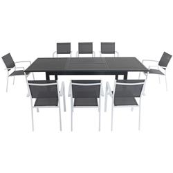 Cameron 9-Piece Expandable Dining Set with 8 Sling Dining Chairs and a 40" x 94" Table - Hanover CAMDN9PC-WHT