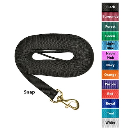 Made with 1 single thickness heavyweight nylon webbing for longer wear 24 foot long with convenient hand loop for training Choice of solid brass swivel bolt snap 20 brass plated chain 24 solid brass chain or 24 brass plated chain Specifications. Color Black