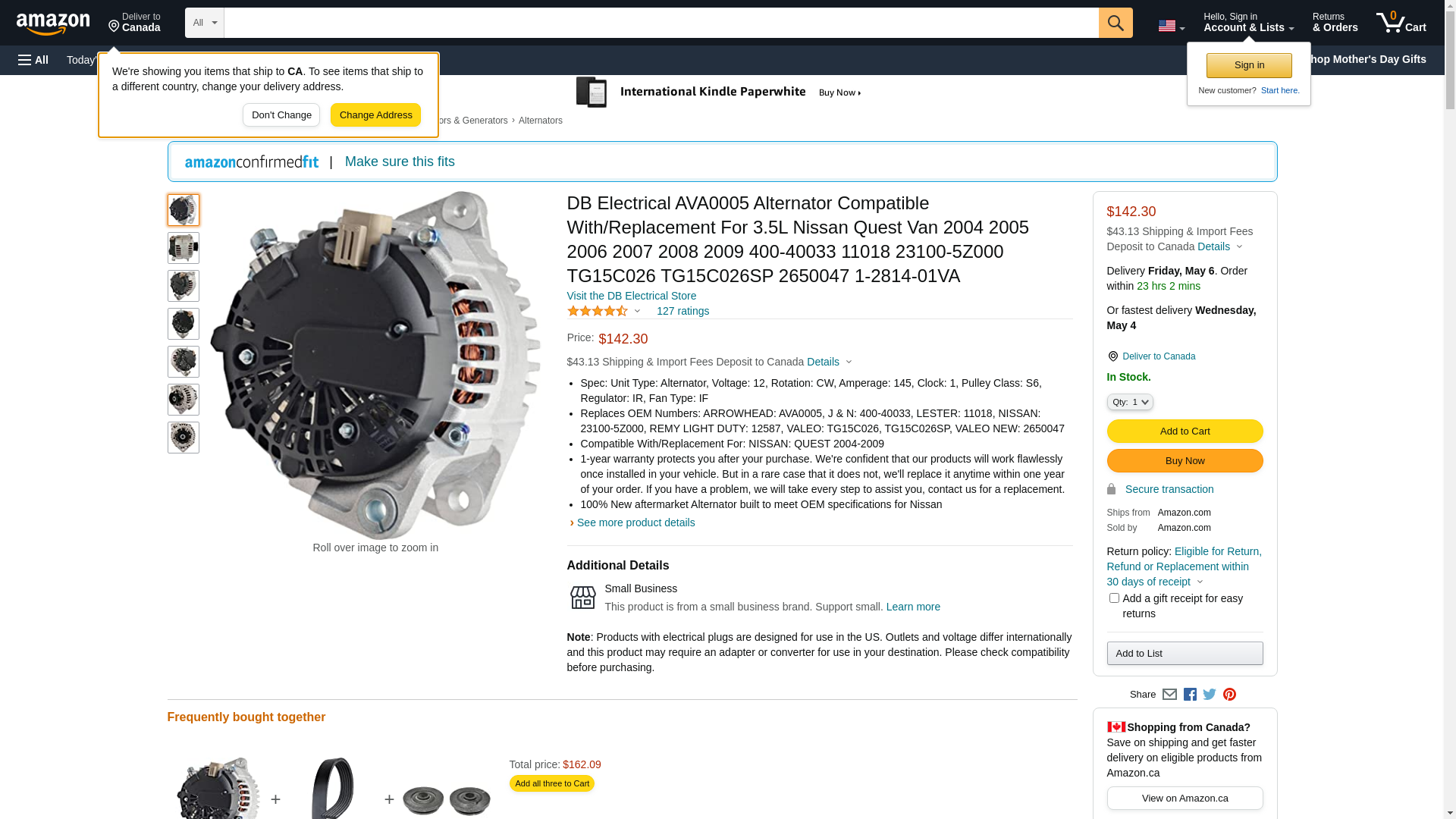 **Verify part fits before purchasing**</br></br>Specs:</br></br>Unit Type: Alternator</br>Voltage: 12</br>Rotation: CW</br>Amperage: 145</br>Clock: 1</br>Pulley Class: S6</br>Regulator: IR</br>Fan Type: IF</br></br>Replaces OEM Numbers: </br></br>ARROWHEAD: 400-40033</br>J & N: 400-40033</br>LESTER: 11018</br>NISSAN: 23100-5Z000</br>REMY LIGHT DUTY: 12587</br>VALEO: TG15C026, TG15C026SP</br>VALEO NEW: 2650047</br></br>Compatible With/Replacement For: </br></br>NISSAN: QUEST 2004-2009