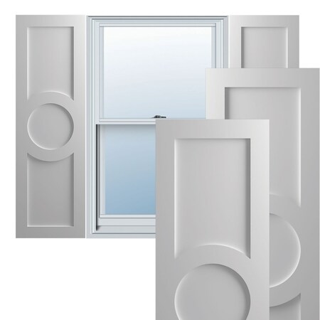 Ekena Millwork TFP001AC15X059PR True Fit PVC Center Circle Arts & Crafts Fixed Mount Shutters, (Per Pair-Hardware Not Included), 15"W, Primed