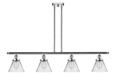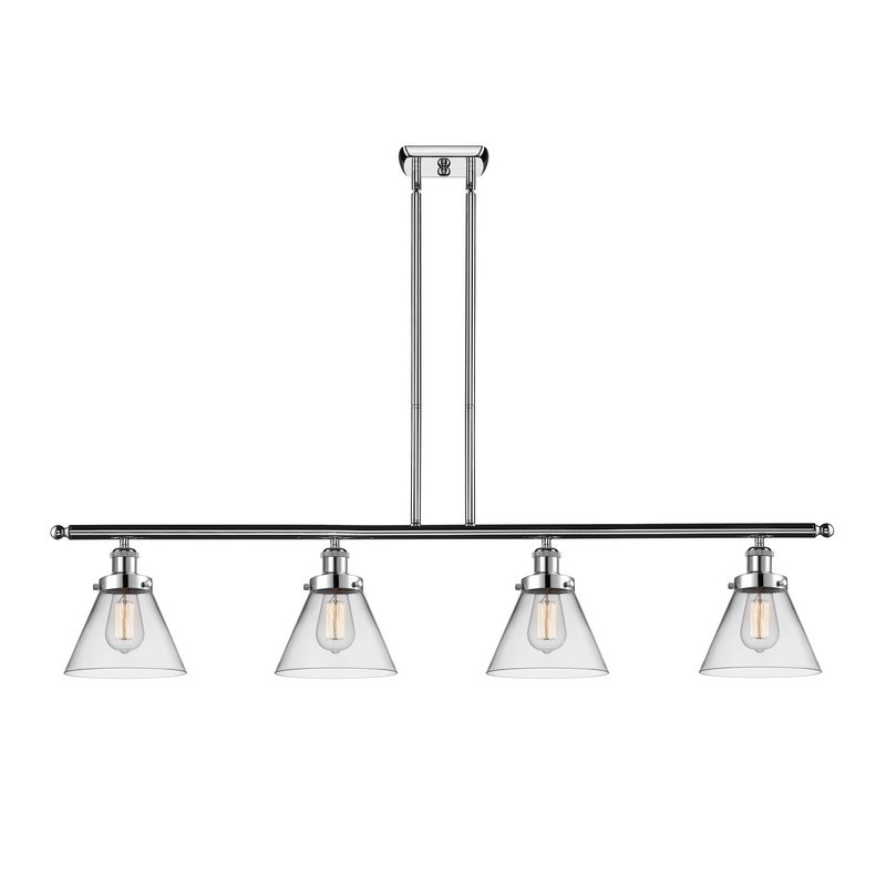 INNOVATIONS LIGHTING 916-4I-PC-G42 BALLSTON LARGE CONE 4 LIGHT 48 INCH CLEAR GLASS ISLAND LIGHT, POLISHED CHROME,...
