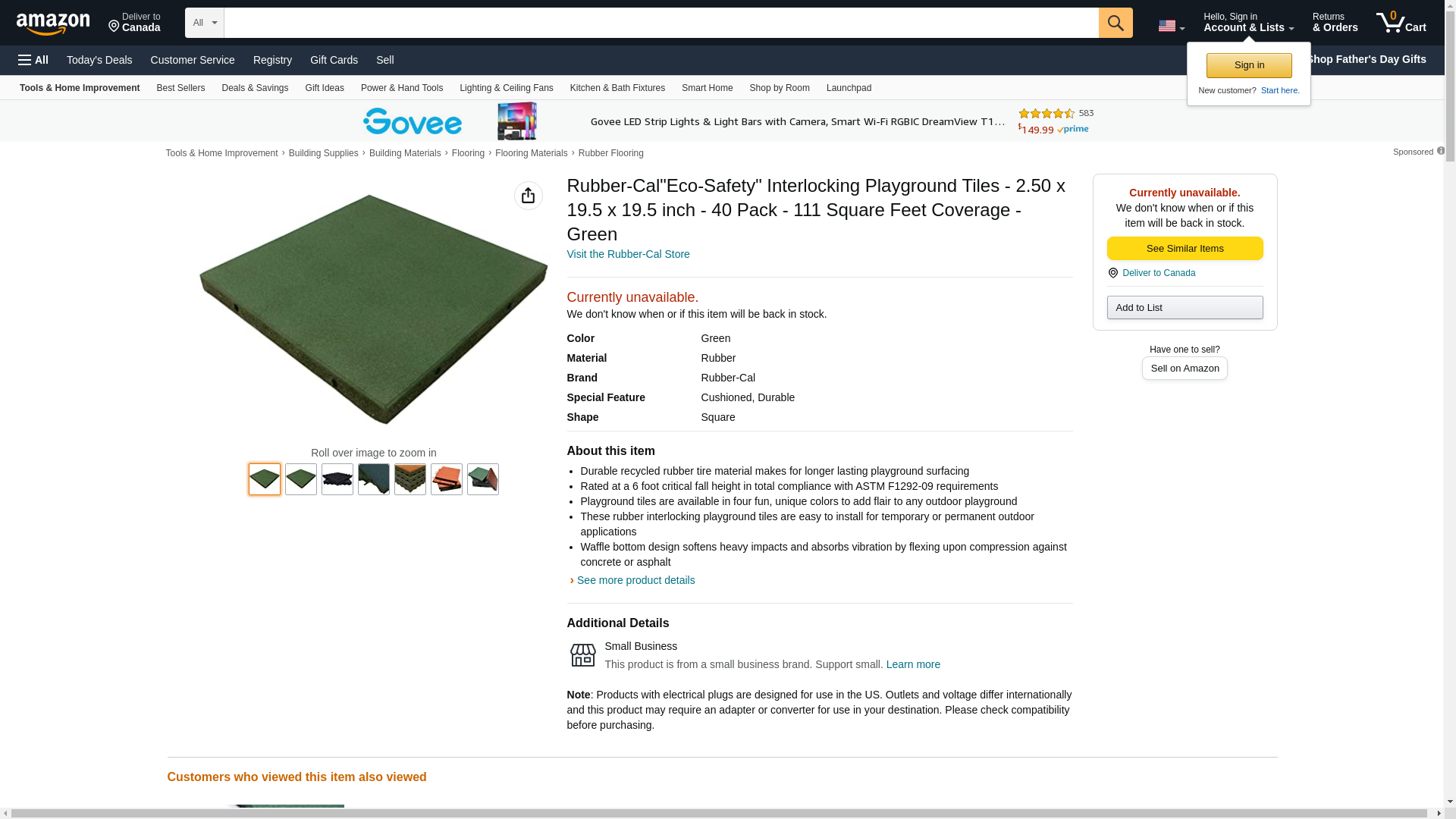 Rubber-Cal"Eco-Safety" Interlocking Playground Tiles - 2.50 x 19.5 x 19.5 inch - 40 Pack - 111 Square Feet Coverage - Green