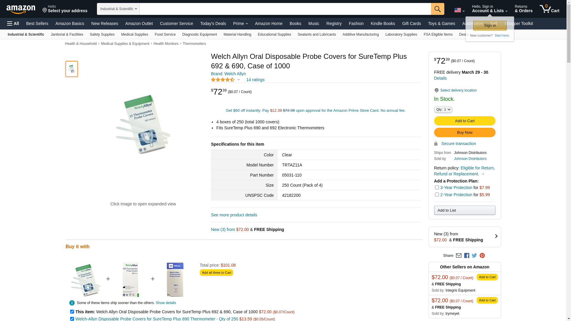 Probe Covers for Welch Allyn SureTemp Plus 690 and 692 Electronic Thermometers. Thermometer sold separately.