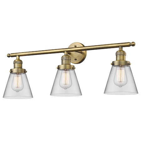 INNOVATIONS LIGHTING 205-BB-G62-LED CONE FRANKLIN RESTORATION 30 INCH 3 LIGHT WALL MOUNT BATH VANITY LIGHT, BRUSHED...