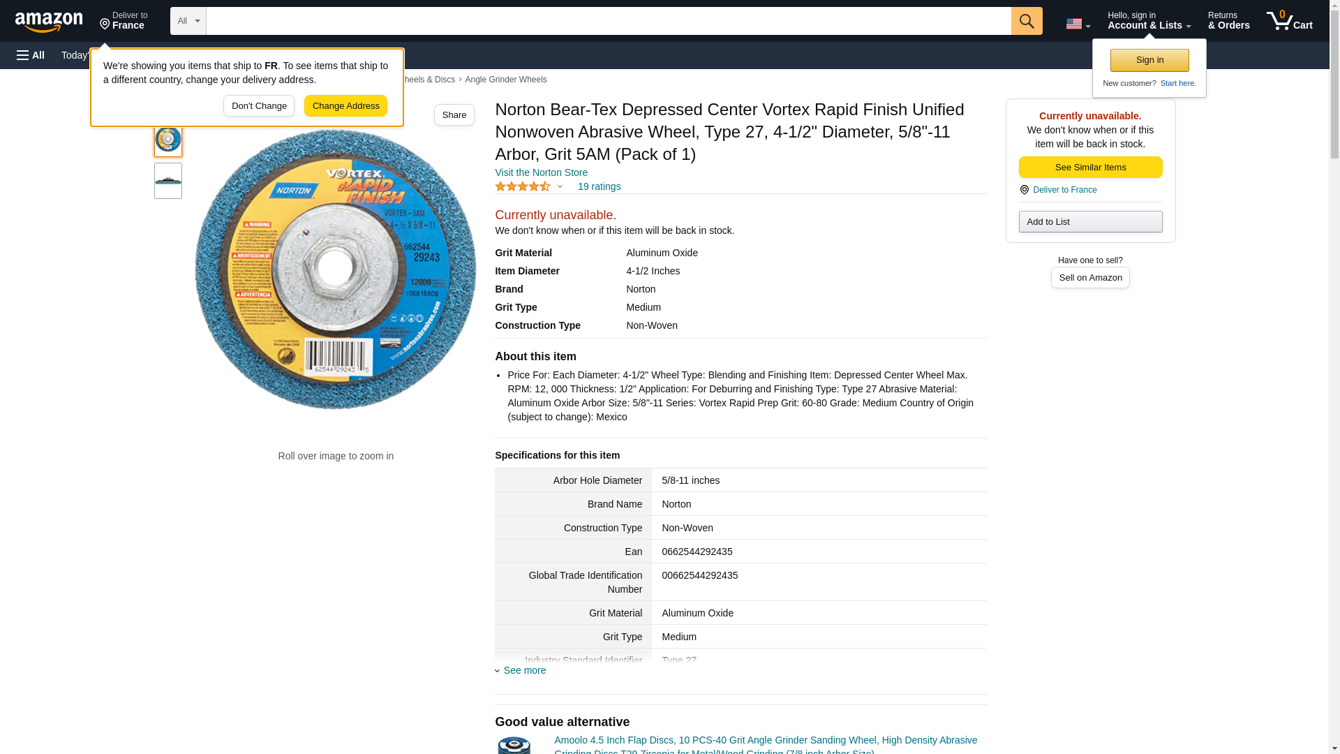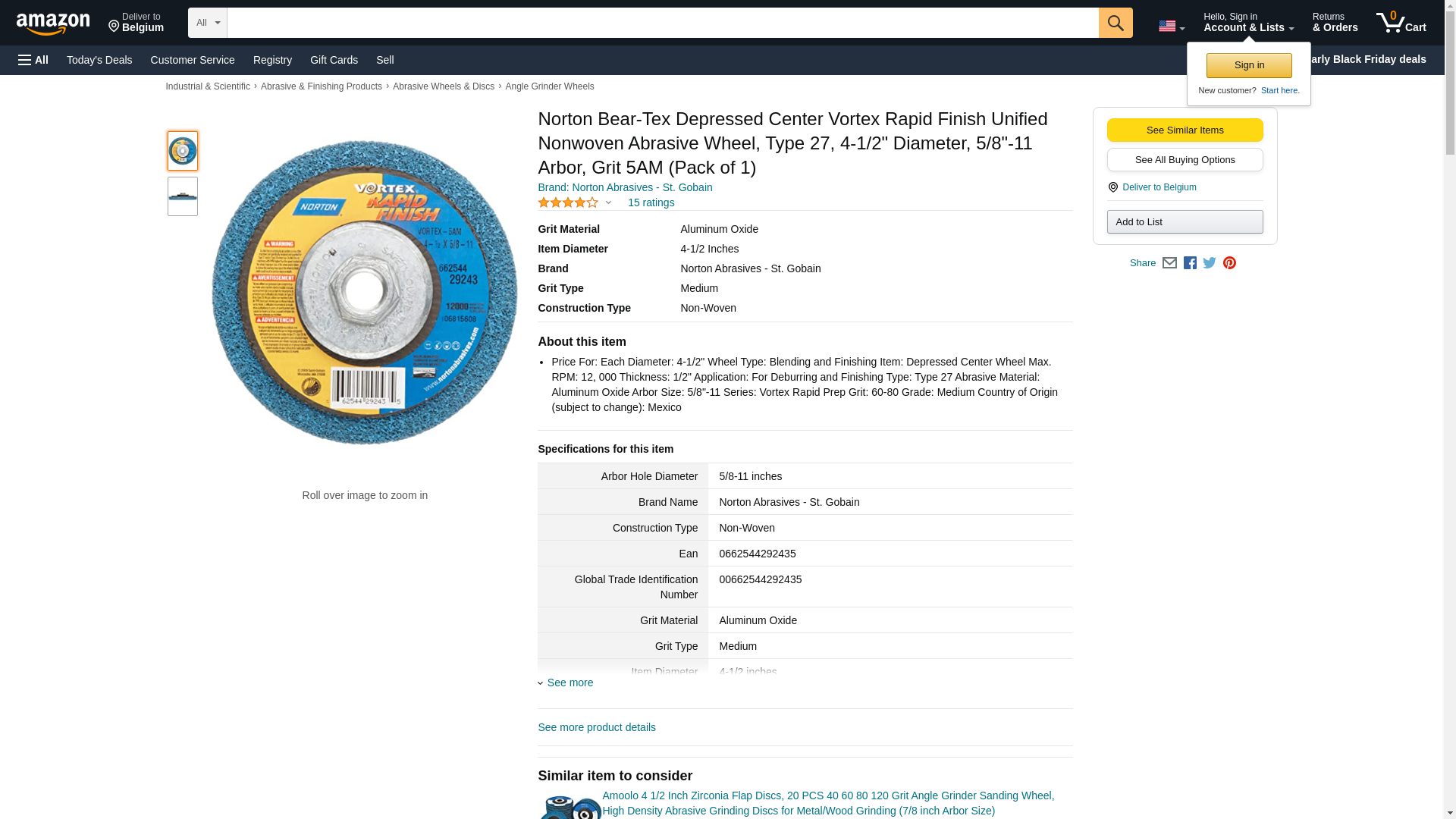 | Feature | Price For: Each Diameter: 4-1/2" Wheel Type: Blending and Finishing Item: Depressed Center Wheel Max. RPM: 12, 000 Thickness: 1/2" Application: For Deburring and Finishing Type: Type 27 Abrasive Material: Aluminum Oxide Arbor Size: 5/8"-11 Series: Vortex Rapid Prep Grit: 60-80 Grade: Medium Country of Origin (subject to change): Mexico |