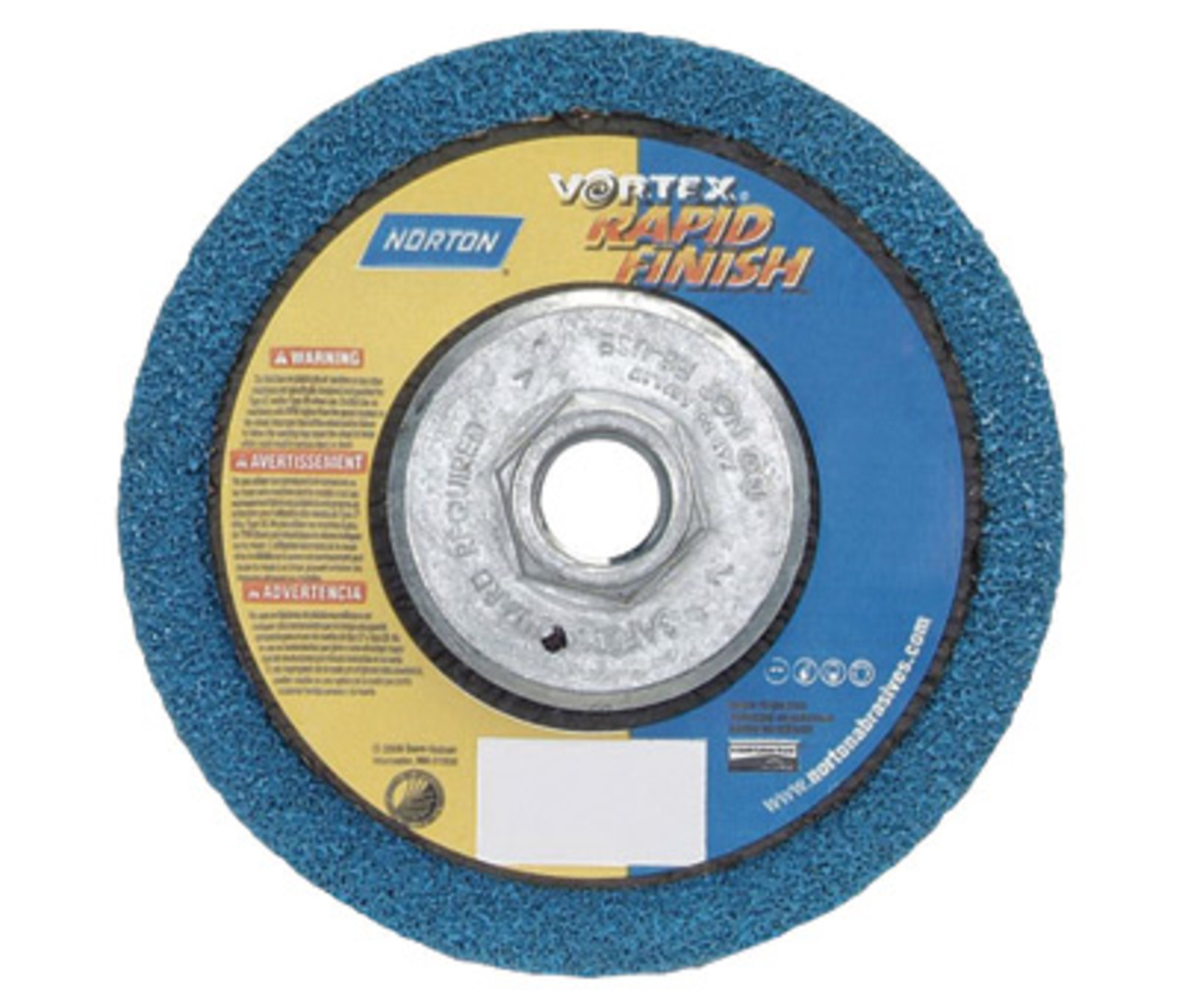 Take care of deburring, blending, surface prep and parting line removal with this Bear-Tex Vortex Rapid Blend aluminum oxide medium grit non-woven depressed center disc. The specially engineered Vortex aluminum oxide agglomerated grain saves time and labor by handling both the medium- and fine-grit steps in manufacturing, industrial, welding and transportation applications. Use the disc on soft metals, super alloys and stainless steel to get rid of rust and coatings and to produce a smear-free surface. The thick nylon web lasts twice as long as comparable discs and cuts down on finishing time, while ensuring minimal shedding. Package of 10.