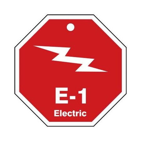 Accuform TDK301VPM Plastic "E-1 Electric" Energy Source Shape ID Tag, 2-1/2" W x 2-1/2" L, White on Red (Pack of 5)