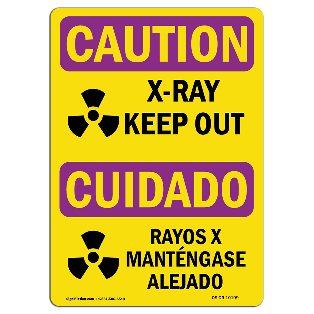 OSHA CAUTION RADIATION Sign, X-Ray Keep Out Bilingual, 14in X 10in Aluminum