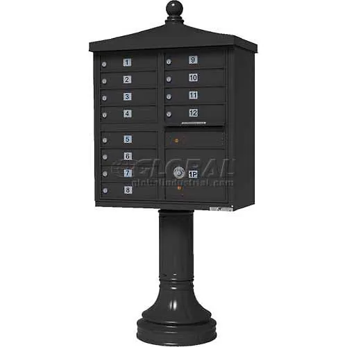 Vital Traditional Cluster Box Units (CBUs) were designed for and are used by the United States Postal Service, to keep mail organized, safe and secure. This 12 door Traditional CBU is available with a powder coated Dark Bronze finish and can be accessorized to match your business park or housing complex architectural features.
