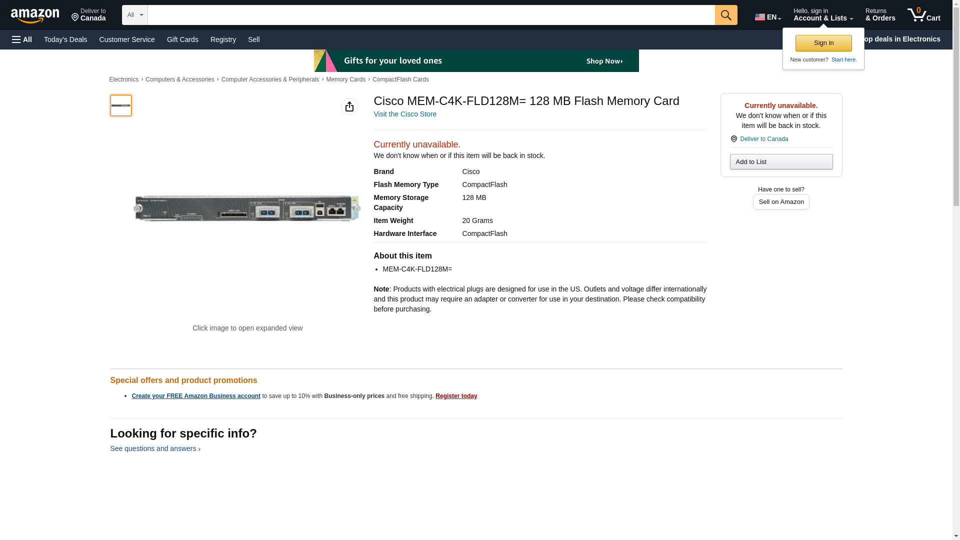 Cisco MEM-C4K-FLD128M= 128 MB CompactFlash 1 Pack MEMC4KFLD128M