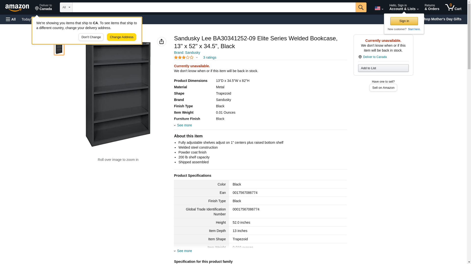 Sandusky Lee BA30341252-09 Elite Series Welded Bookcase, 13" x 52" x 34.5", Black