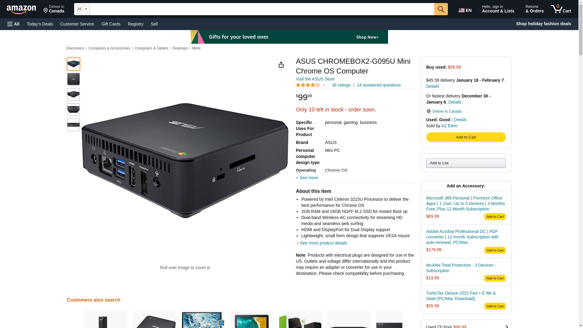 ASUS CHROMEBOX2-G095U Mini Chrome OS Computer