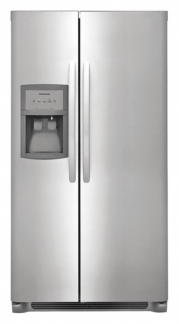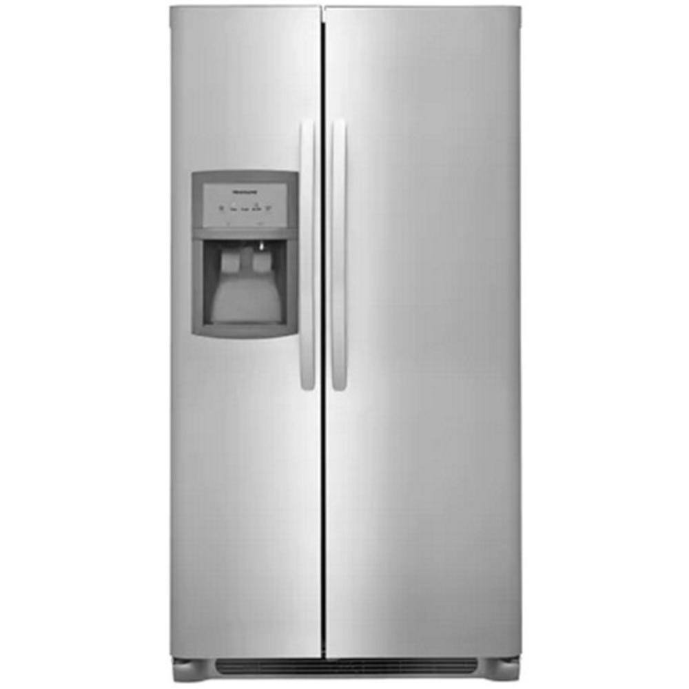 FFSS2625TS 36 Side-by-Side Refrigerator with 25.5 cu. ft. Capacity LED Lighting External Ice and Water Dispenser 2 Store-More Glass Shelves 2 Wire Freezer Shelves and Automatic Ice Maker in Stainless Steel