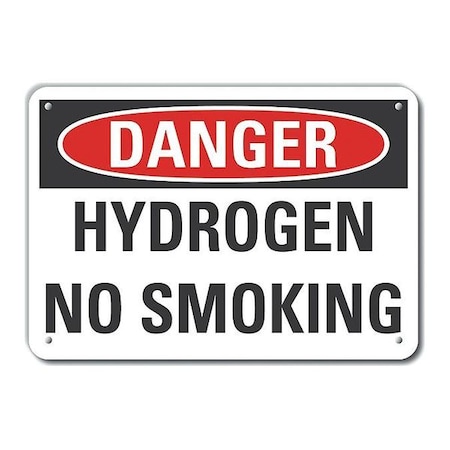 Aluminum Hydrogen Danger Sign, Vertical Rectangle, Number of Printed Sides 1, English, Sign Format Traditional OSHA, Sign Legend Hydrogen No Smoking, Sign Legend Background Color White, Sign Legend Style Text