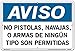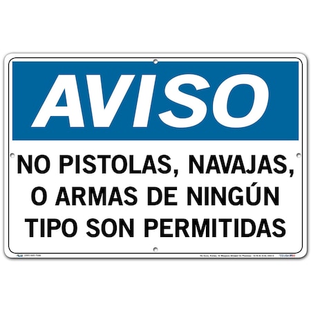 Vestil Notice SignSI-N-41-D-AL-040-S 41 18.5X12.5 Aluminum .040 No Guns, Knives, Or Weapons Allowed On Premises NO PISTOLAS, NAVAJAS, O Armas DE NINGÚN TIPO Son PERMITIDAS