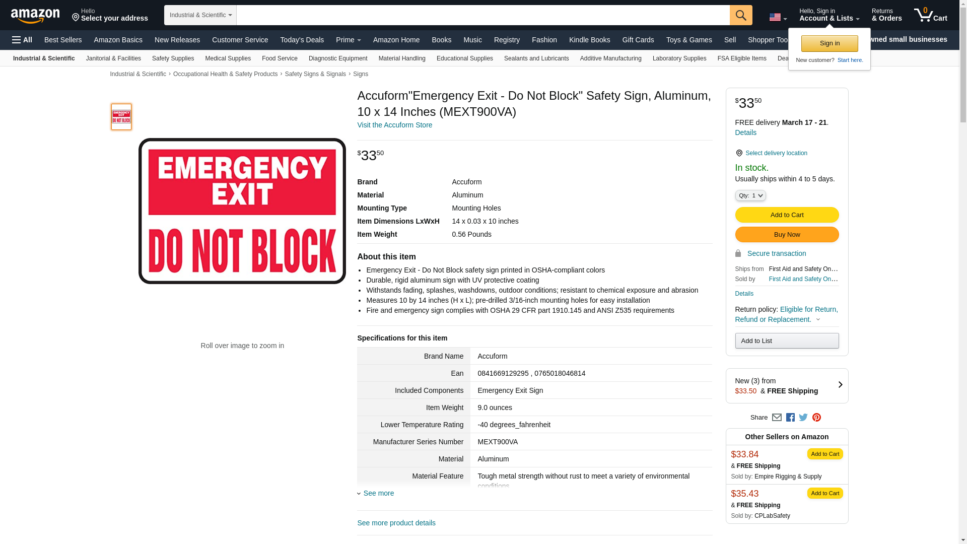 Order MEXT900VA by Accuform Aluminum Sign "Emergency Exit Do Not Block" - US Mega Store