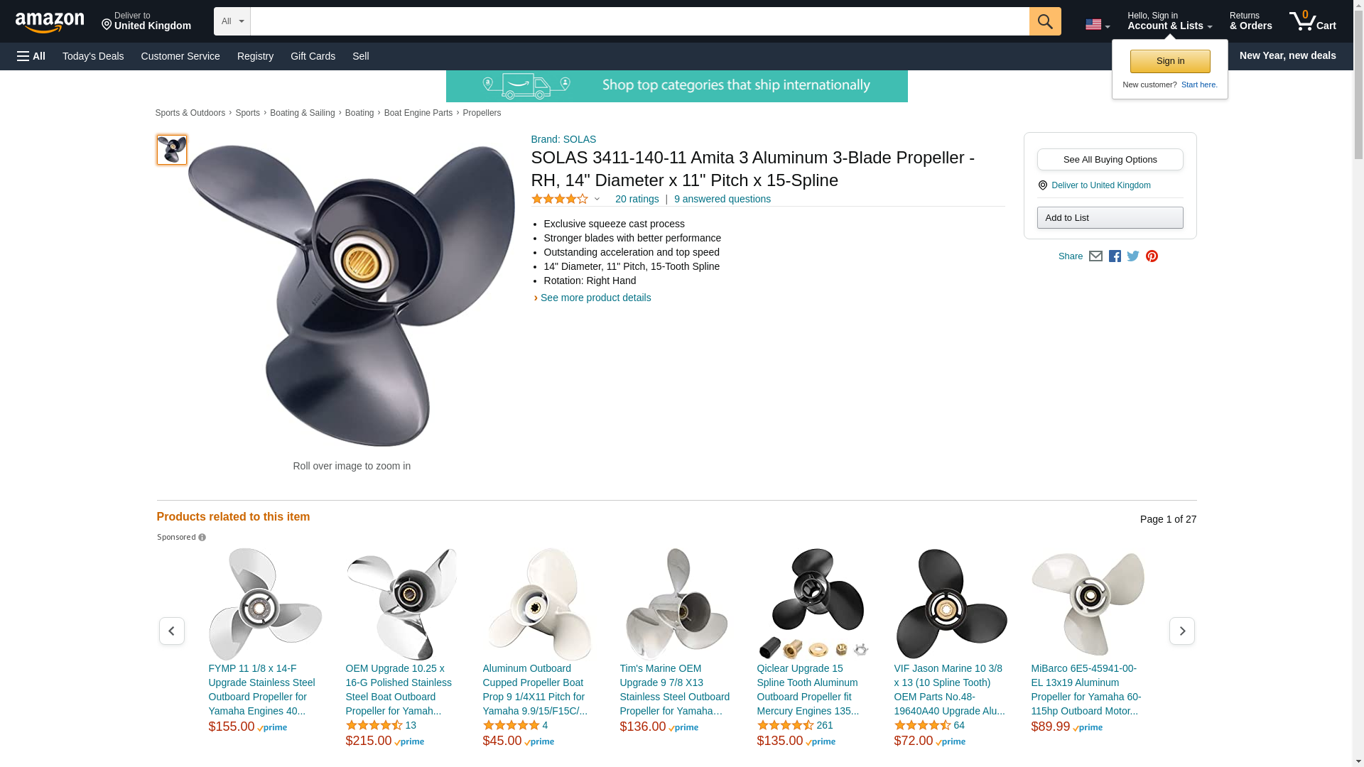 Solas 3411-140-11 Yamaha Aluminum Propeller 101036