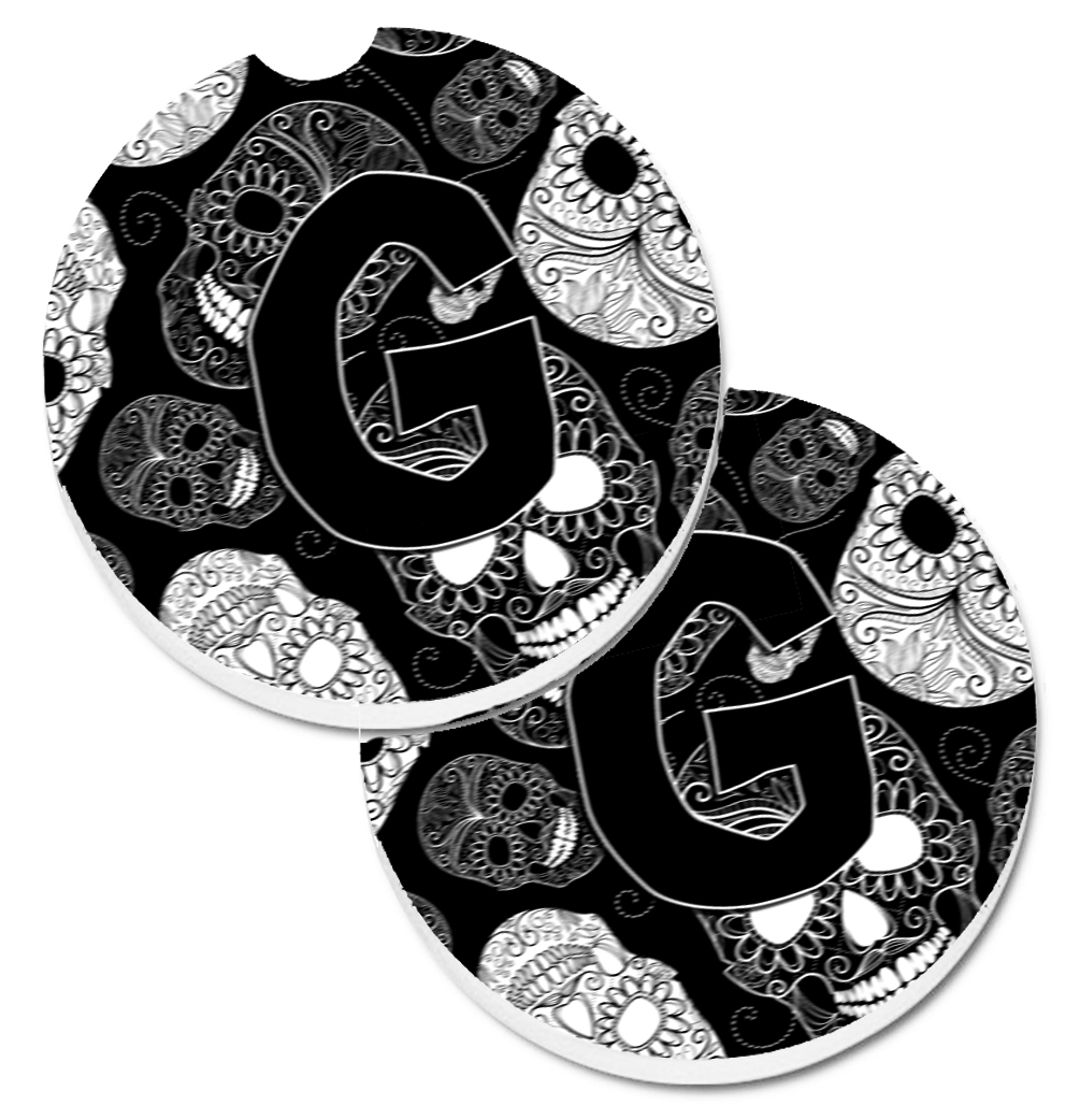 Carolines Treasures CJ2008-GCARC Letter G Day of the Dead Skulls Black Set of 2 Cup Holder Car Coaster