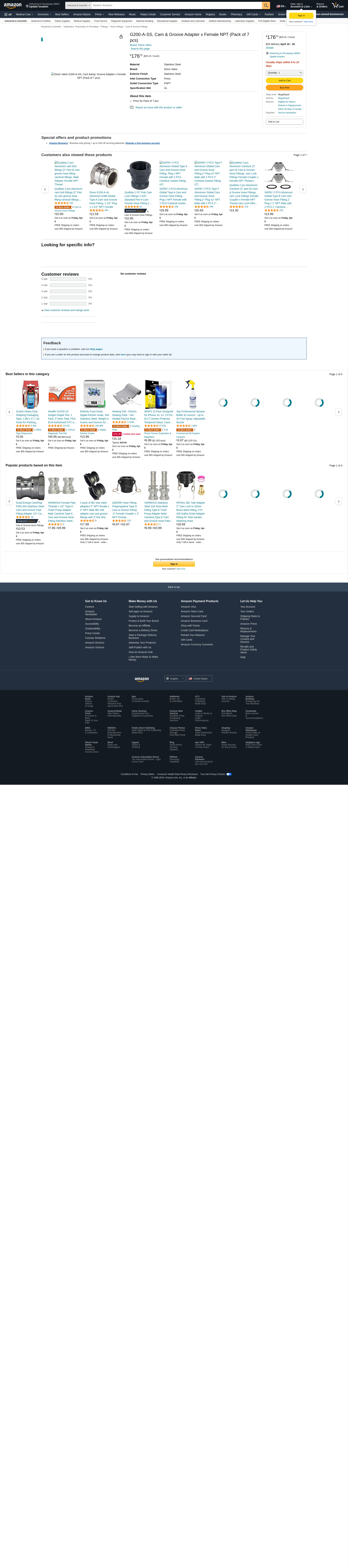 Dixon Valve G200-A-SS, Cam & Groove Adapter x Female NPT (Pack of 7 pcs)