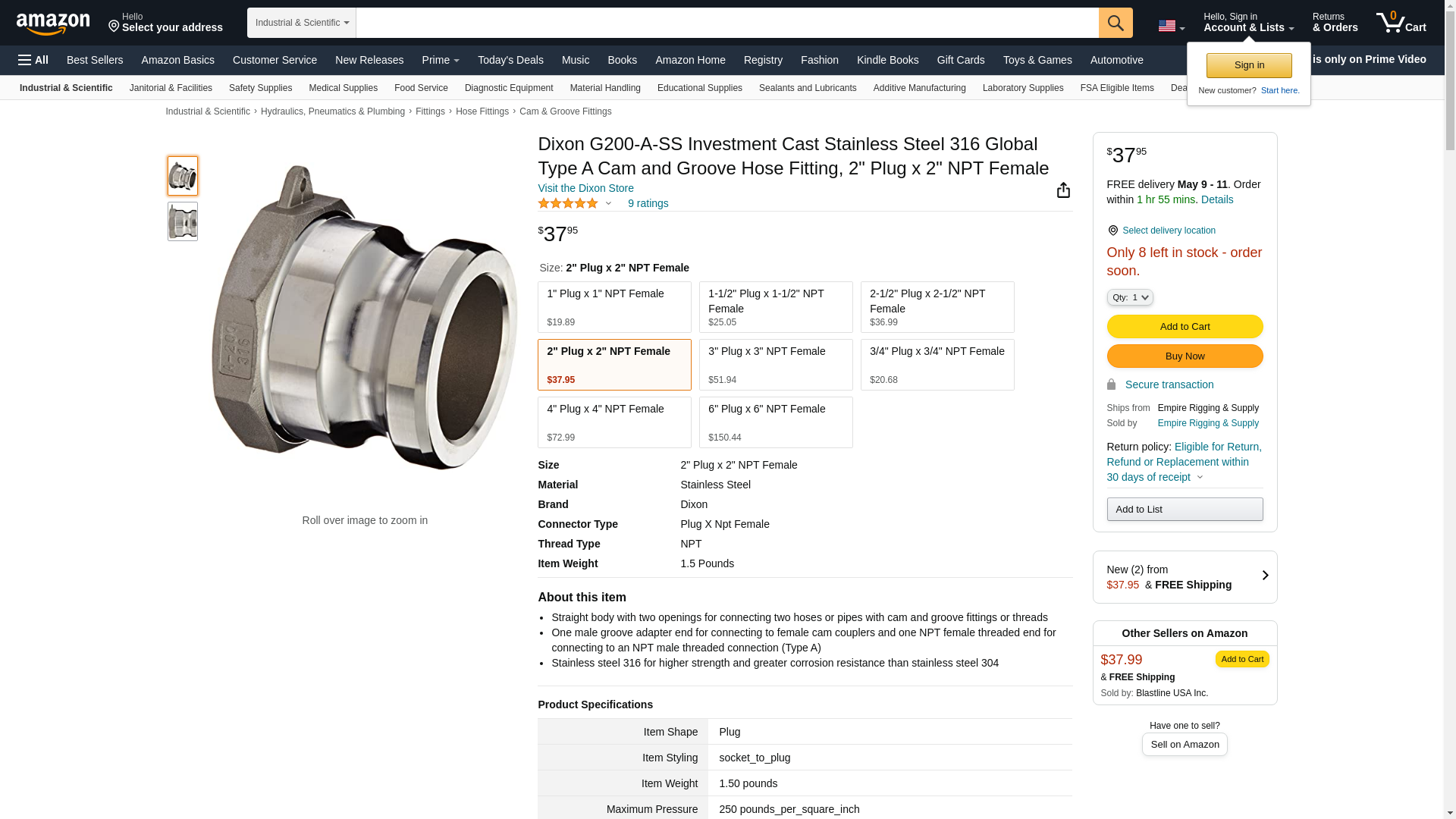 <p><strong>Dixon, G200-A-SS, 2" 316 Investment Cast Stainless Steel Global Cam & Groove Type A Adapter X Female NPT</strong></p><p><strong>Applications</strong></p><ul><li>Designed for use with liquids</li></ul><p><strong>Specifications</strong></p><ul><li>Designed to interchange with all products produced to A-A-59326D</li></ul><p><strong>Features</strong></p><ul><li>Made to Dixon specifications and branded Dixon</li></ul><p><strong>How it works</strong></p><ul><li>To make a connection, simply slide the adapter into the coupler and with normal hand pressure, press the cam levers down.</li><li>Uncoupling is as quick and simple as coupling. Just lift the cam arms and remove the adapter.</li></ul><p><strong>Safety notes</strong></p><ul><li>Under no circumstances should cam and groove couplings be used for compressed air or steam service!</li><li>Pressure rating is based on the seal of the mating part</li><li>Pressure rating recommendations are based on the use of mating Dixon fittings at ambient temperature 70°F / 21°C with a standard seal installed.</li></ul>
