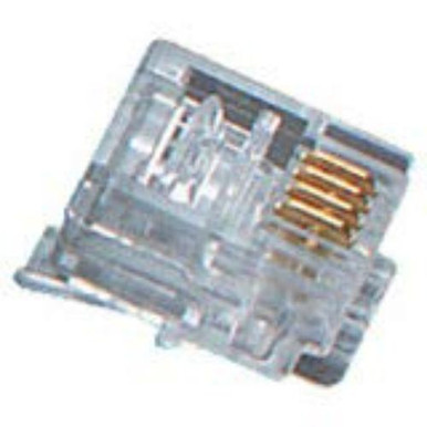RJ-11 Modular Connector, 4-Wire, 50 pcs Stranded or solid wire connectors for TELCO or data interfaces. Features: Can be used with flat satin or round solid cables. Accepts wire gauges of 24, 26, or 28 AWG. Guaranteed for life!