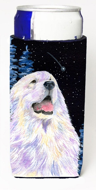 Caroline's Treasures SS8466MUK Starry Night Great Pyrenees Ultra Hugger for slim cans Can Cooler Sleeve Hugger Machine Washable Drink Sleeve Hugger Collapsible Insulator Beverage Insulated Holder