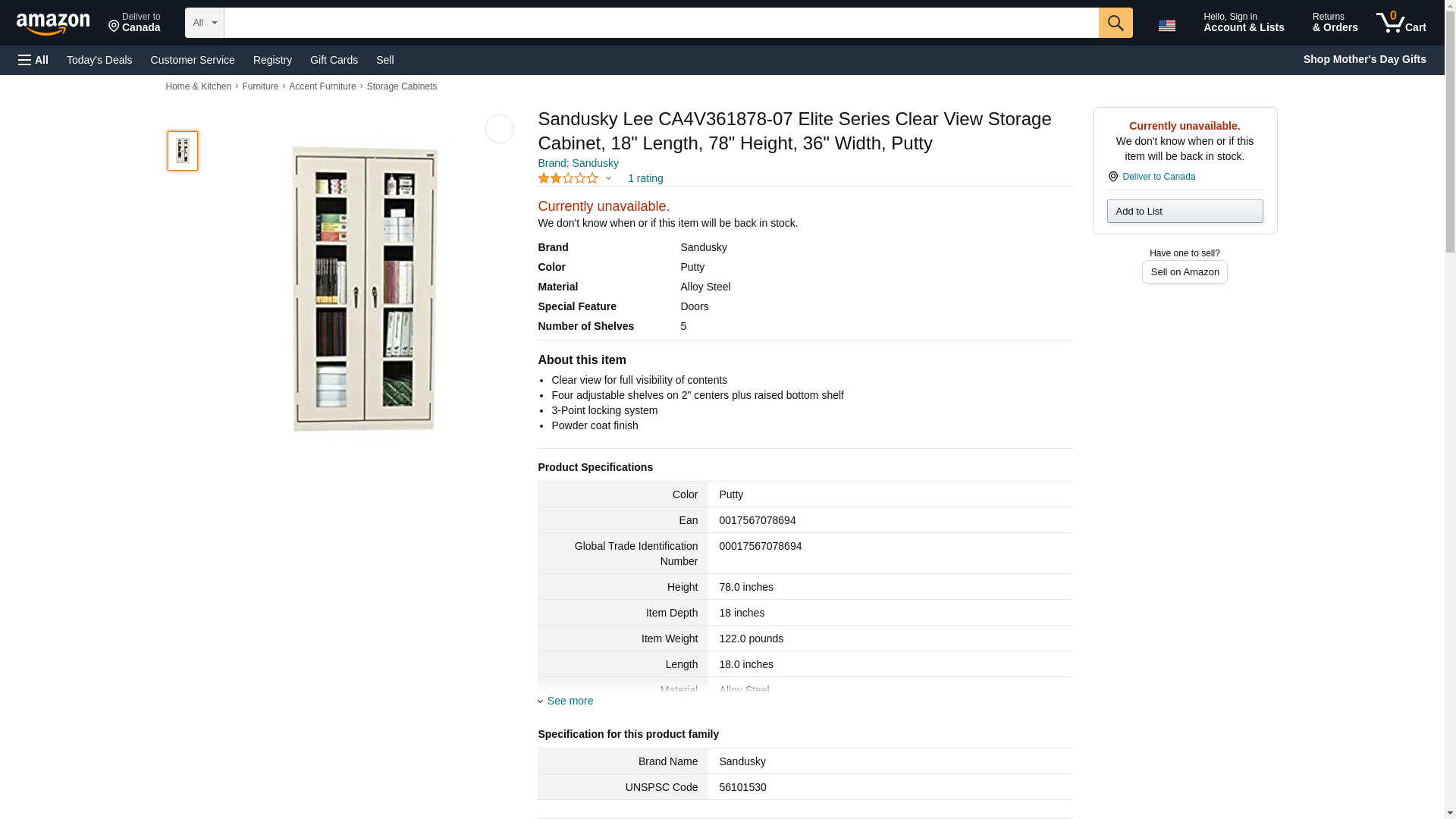 Sandusky Lee CA4V361878-07 Elite Series Clear View Storage Cabinet, 18" Length, 78" Height, 36" Width, Putty