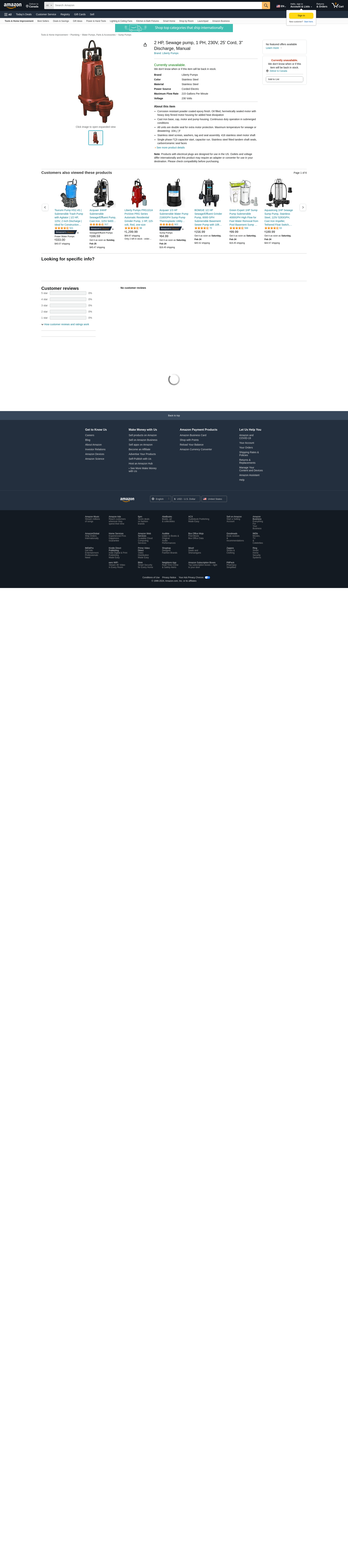 Submersible Sewage Pump, 2HP, 230V, 83ft LEH202M3-2