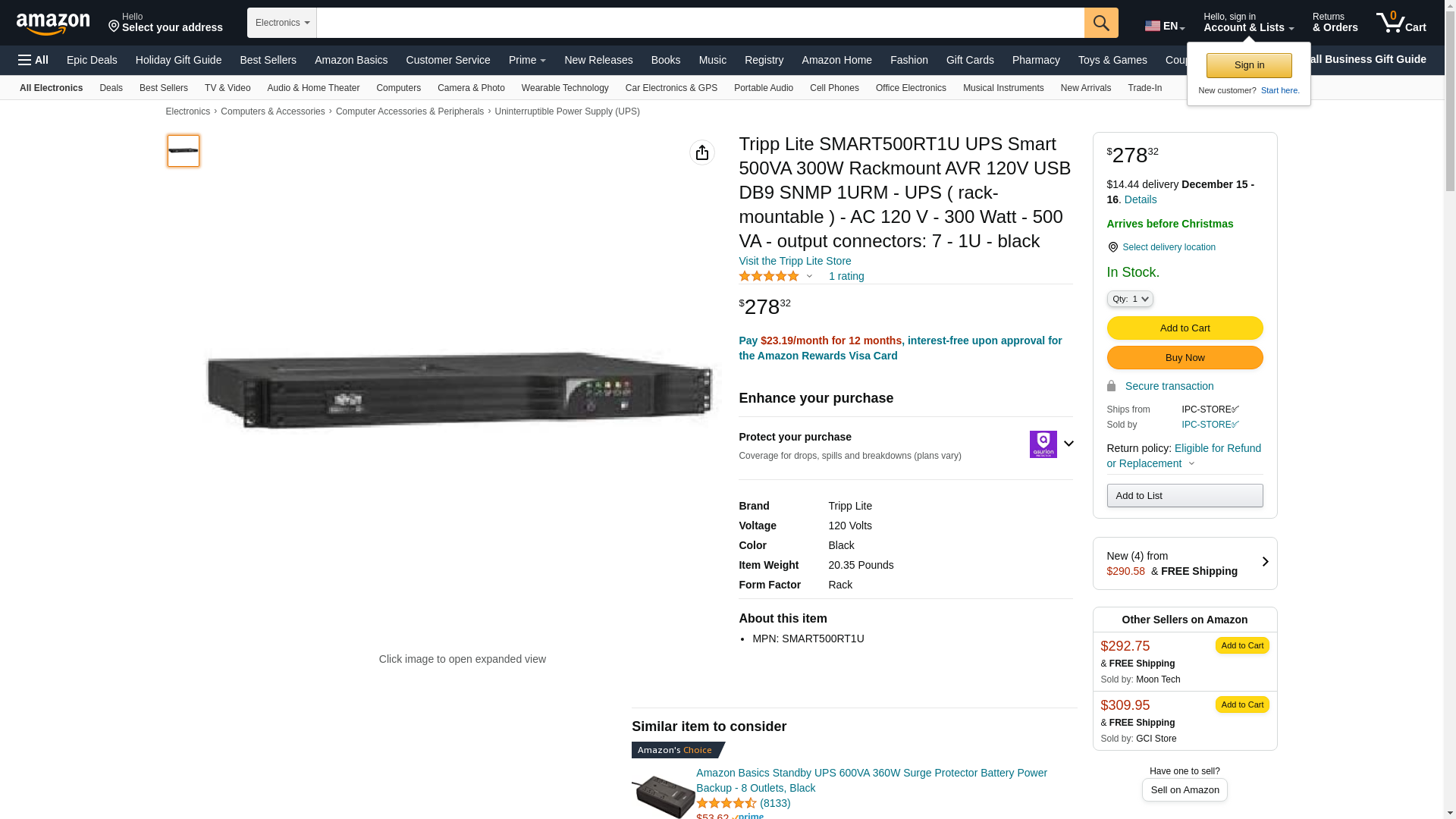 ![]() homeessentialsdirect.com | SMART500RT1U | 1 | -2 | 1 | 1 @ $280.33 |