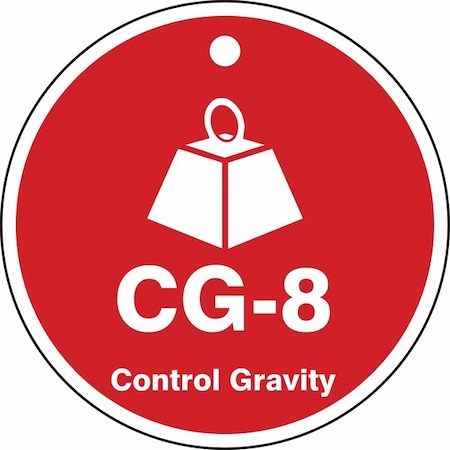 Accuform TDK108VPE Plastic "CG-8 Control Gravity" Energy Source Shape ID Tag, 2-1/2" W x 2-1/2" L, White on Red