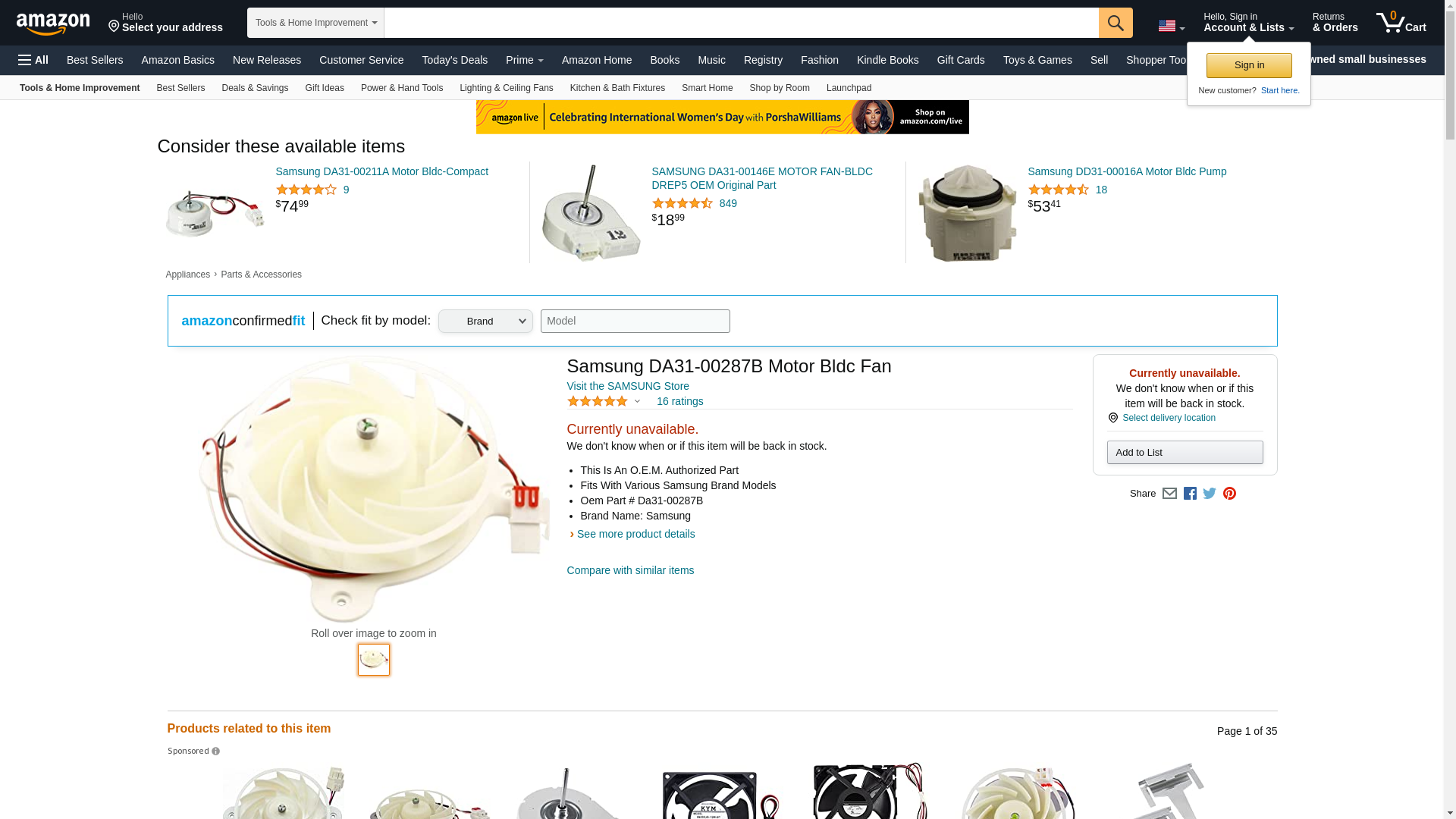 ![]() tvserviceparts.com | DA31-00287B | 1 | 1 | 1 @ $143.24 | |