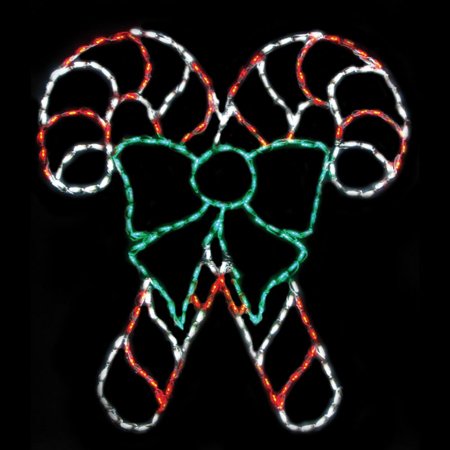 <ul><li>Dimensions: 44W x 47H inches</li><li>Uses 3,000-hour commercial-grade LED bulbs</li><li>Red and white candy canes wrapped in a green bow</li><li>No adapter needed</li><li>260 bulbs with 2-inch spacing</li><li>An iconic holiday image </li><li>Rust-resistant, powder-coated, steel-constructed frame</li><li>Bulbs covered by durable, UV-protected color clips</li><li>Ideal for outdoor or indoor display</li><li>Durable white cord</li><li>Overall length: 320 inches</li></ul>