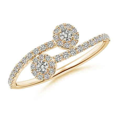<ul> <li>Two Stone Diamond Bypass Ring with Diamond Accent in 14K Yellow Gold (Color: K, Clarity: I3)</li> <li>Approximate Carat Total Weight 0.36 ct</li> <li>Prong Setting</li> <li>Angara deals only in conflict free diamonds. Conflict-free diamonds are guaranteed not to be obtained through the use of violence, human rights abuse, child labor, or environmental destruction. Angara completely supports the Kimberley Process, which is an International process to track and certify diamonds.</li> <li>Free Certificate of Authenticity and 30-Days Easy Returns.</li> </ul>