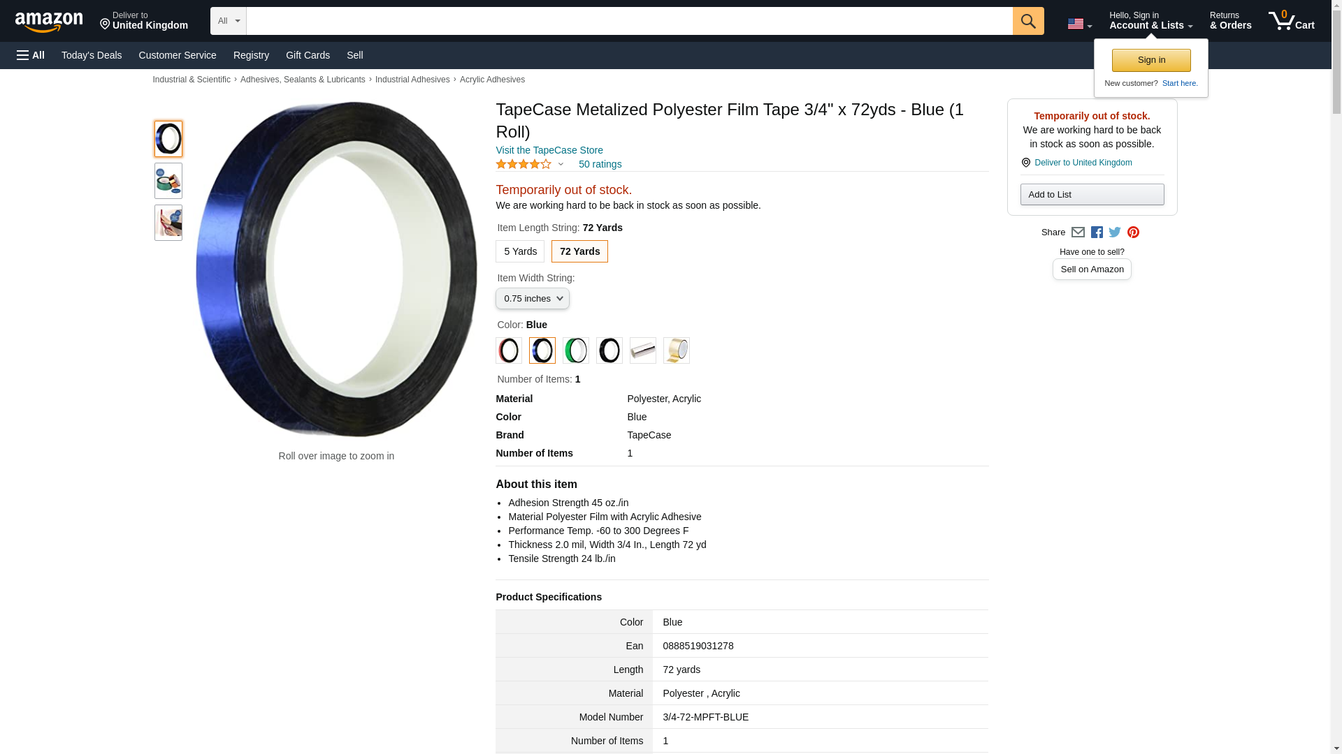 - Thickness 2.0 mil, Width 3/4 In., Length 72 yd
