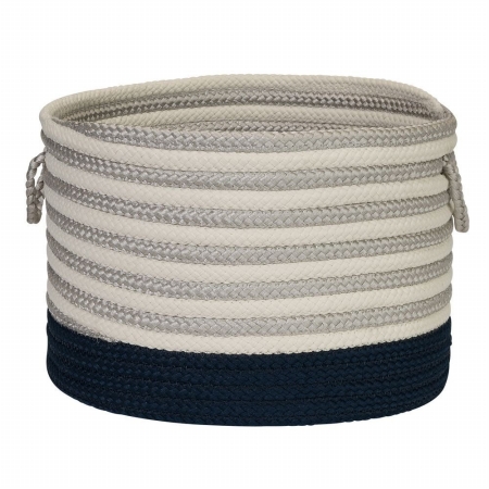 Chloe Stripe Baskets Braided Basket, 14"x14"x10", Navy