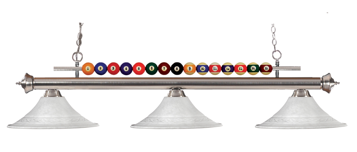 Z-Lite 170BN-FWM16 Shark Three Light Billiard, Metal Frame, Brushed Nickel Finish and White Mottle Shade of Glass Material