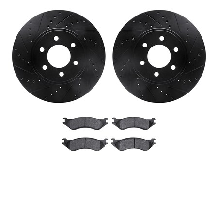 Dynamic Friction Company Front Brake Rotors Drilled and Slotted Black with Heavy Duty Brake Pads - 8202-40129