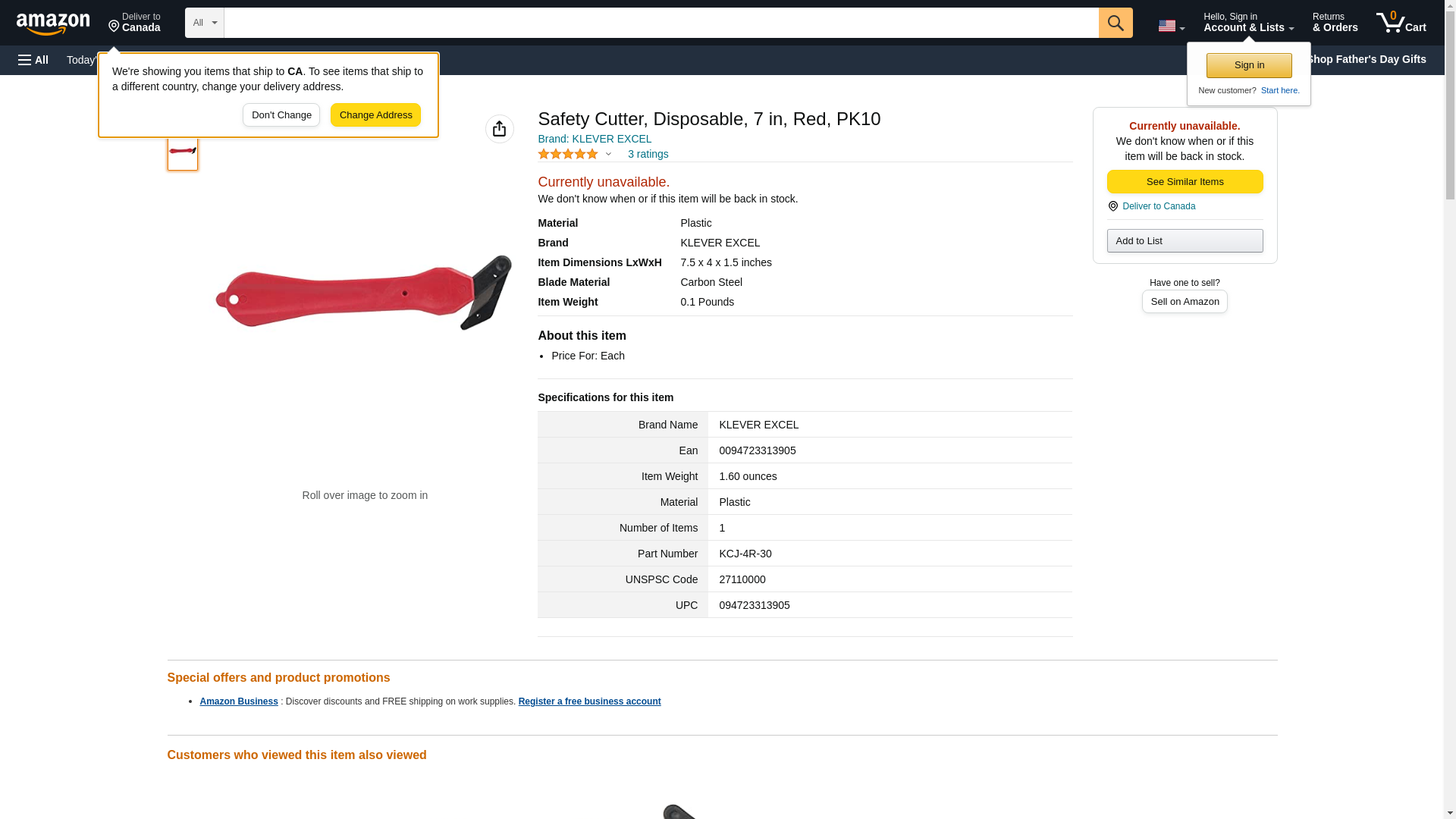 'Box Cutter, Single Head, Overall Length 7 in., Overall Width 2 in., Overall Thickness 1-1/2 in., Position 1, Knife Material Plastic/Carbon Steel, Color Red, Blade Change No, Blade Type Carbon Steel, Number of Segments 1, Blade Material Carbon Steel, Handle Type Plastic, Features Safety Recessed Blade, Stores No, Number of Blades 1, Pliers Included No, Handle Material Plastic, Voltage Rating None, Application For Cutting Boxes, Tape, Banding, Shrink Wrap, Package Quantity 10'
