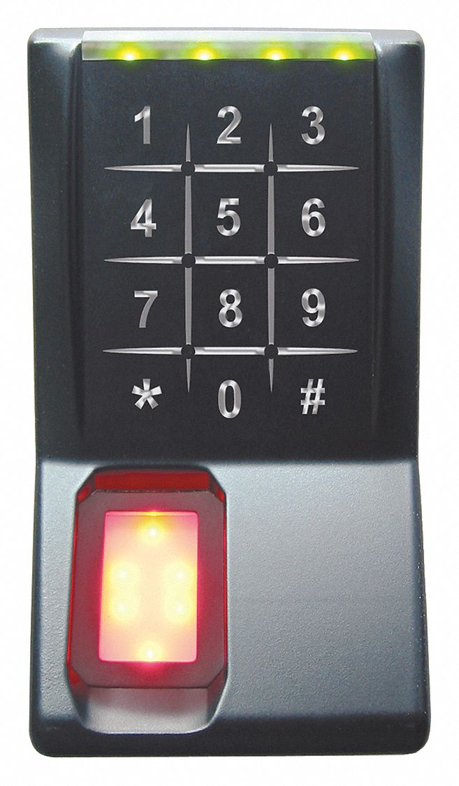 Key Fingerprint Case Material Plastic Finish Smooth Black Series AR402 Keying Push Button Hand Non Handed Height 4 In. Width 4-1/4 In. Depth 6-1/4 In. Number of Keys 12 Features Status Lights Sensor Touch Keypad Optical Sensor All Weather Indoor/Outdoor Design Voltage 12 to 24VDC Operating Temp Range 14 Degrees to 122 Degrees F Event Audit Trail No Max User Codes 3000 Standards FCC CE IP-65 Weather Resistant No For Use With Access Control Systems Employing Wiegand