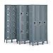 Popular in employee locker rooms, schools, and health clubs tough durable HALLOWELL Heavy-Duty Ventilated Lockers are made to last. Heavy-duty construction features 14-gauge steel door; 16-gauge steel sides and top; 18-gauge steel back. Rubber bumpers on door frame ensure quiet operation. Continuous piano hinge. 6"H legs. Includes number plate for each door. Specify number at time of order, otherwise will start with #1. Baked enamel finish. One-piece stainless steel recessed handle on 2-tier with 2-point lock. Accepts padlocks and keyed locks. 2-tier lockers include (3) single hooks, and a double hook.