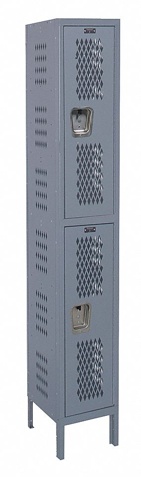 - Hallowell U1228-2HV-A-HG Heavy-Duty Ventilated Locker Double Tier 12x12x36 2 Door Assembled - Gray <