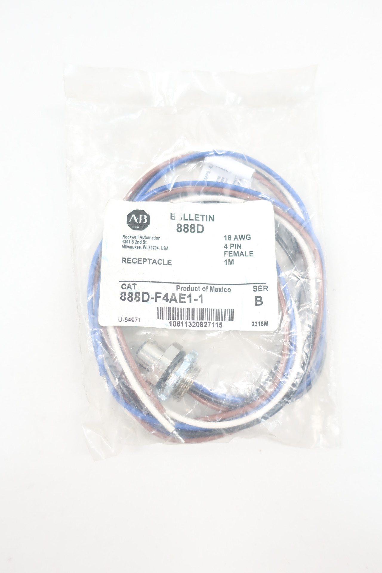Allen Bradley 888D-F4ae1-1Series Bdc Micro Receptacle4 Pole, Female, Straight, 1 Meter