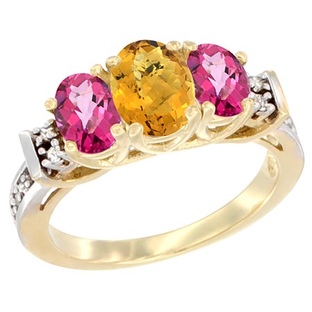 10K Yellow Gold Natural Whisky Quartz & Pink Topaz Ring 3-Stone Oval Diamond Accent