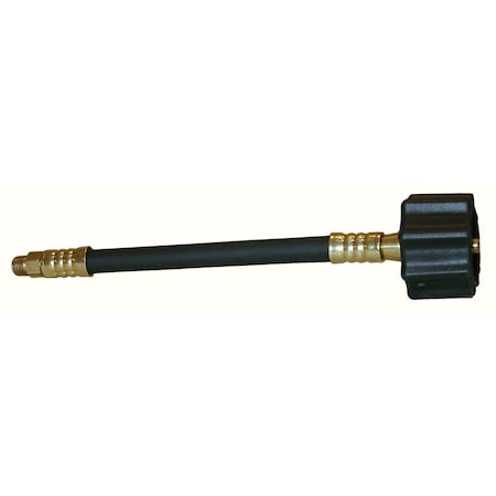 Marshall Excelsior MER425-12 Propane Hose; 1/4 Inch Inside Diameter High Pressure Hose; 200,000 BTU Capacity; Female QCC (Quick Check Connector) Type 1 Connection x 1/4 Inch Male Inverted Flare; With Thermal Protection; 12 Inch Length; Thermoplastic And Brass