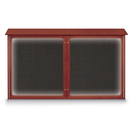 United Visual Products 60"W x 36"H Sliding Door Corkboard with Walnut Frame
