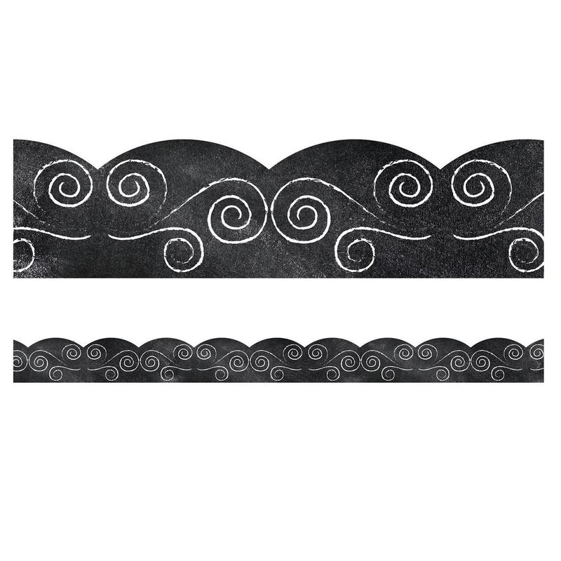 Swirls On Chalkboard Scallpd Bordrs Industrial Cafe CD-108393 Carson Dellosa Border/Trimmer | K12 School Supplies | Teacher Supplies
