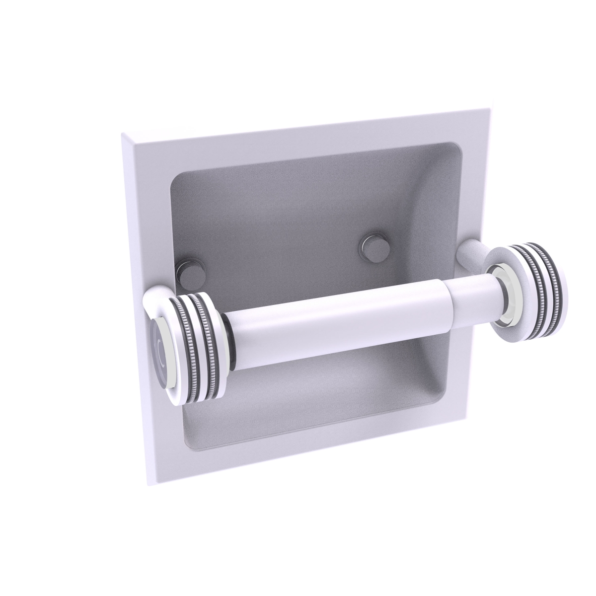 ALLIED BRASS CV-24CD-WHM CLEARVIEW 6 1/4 INCH RECESSED TOILET PAPER HOLDER WITH DOTTED ACCENTS, MATTE WHITE