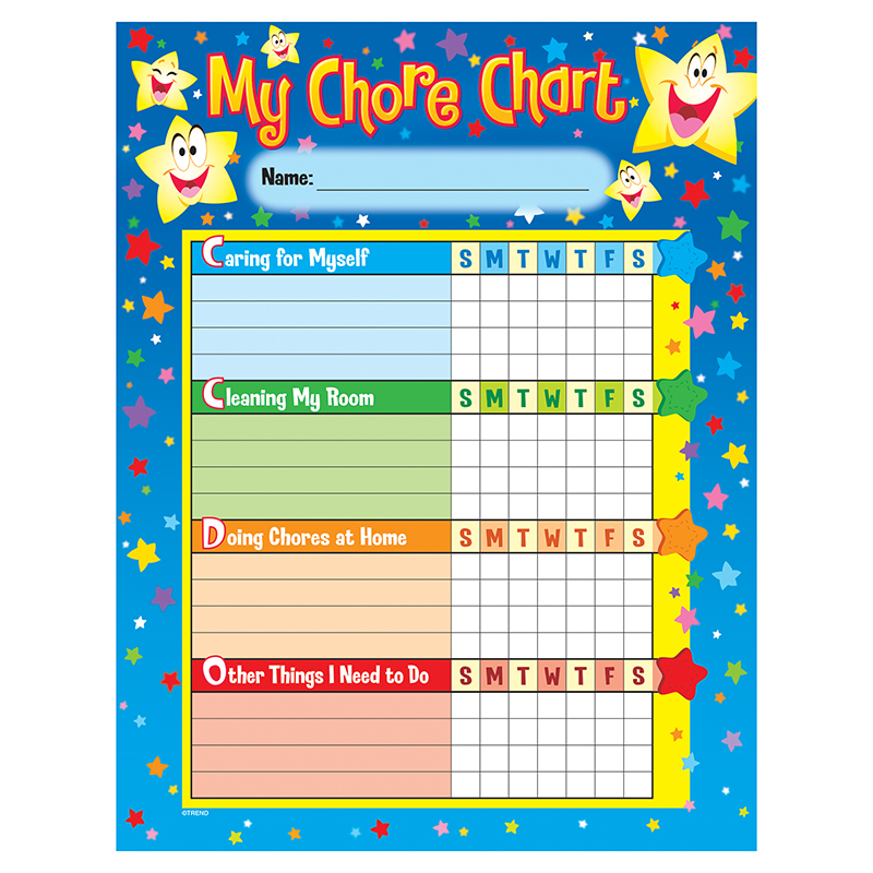 <br><br>Kids will truly feel like stars as they track progress and achievement with this colorful Chore Chart. Charts can be personalized with child's name and specific tasks. Star stickers included to celebrate progress. 25 charts per pad. 100 sparkle star stickers included. Sold as 3 pads for a total of 75 charts.<br><br>- Chore Chart.<br>- Stars.<br>- Measures 8.5" x 11".<br>- 25 Sheets per pad, sold as 3 pads, 75 chore charts total.<br>- Track progress the fun way, and motivate children to set goals.<br>- Open-ended subjects make it easy to customize a chart for every child.<br>- Each pack includes sparkle stickers to celebrate success.<br>- Sold as 3 pieces/Bundle.