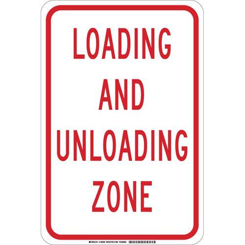 Brady 129590 Loading And Unloading Zone Sign - Self-sticking Polyester 18 x 12 - Red on White