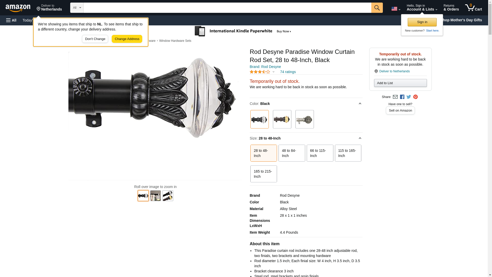 | Feature | This Paradise curtain rod includes one 28-48 inch adjustable rod, two finials, two brackets and mounting hardware |